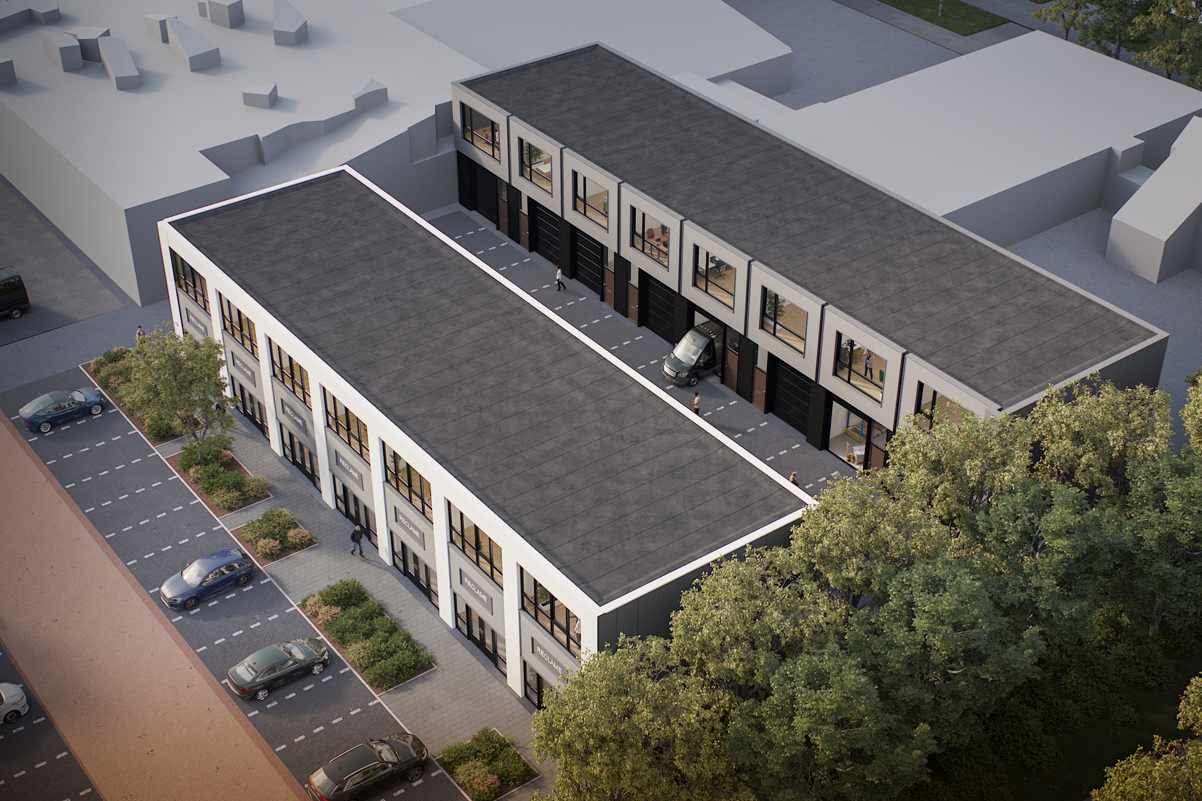 Het project bestaat uit 8 businessunits en 7 atelierruimtes, met vloeroppervlaktes van circa 124 m² tot 142 m². Units 1 t/m 8 hebben een elektrisch bedienbare overheaddeur met een hoogte van 4 meter en een breedte van 3,1 meter. Daarnaast beschikt iedere unit van een buitenlamp met sensor en hebben de units veel daglichttoetreding door de grote raampartijen.